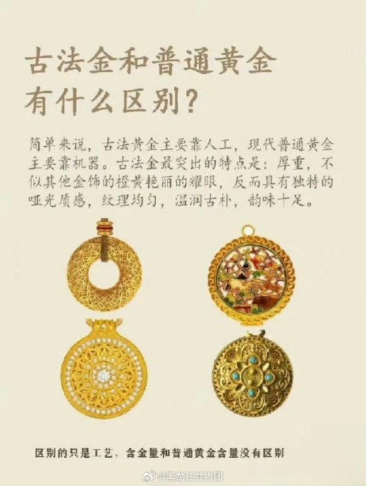 | 古法金 | 厚重感强 | 哑光质感,工费高昂,需警惕电镀仿品 | 收藏、文化饰品 |